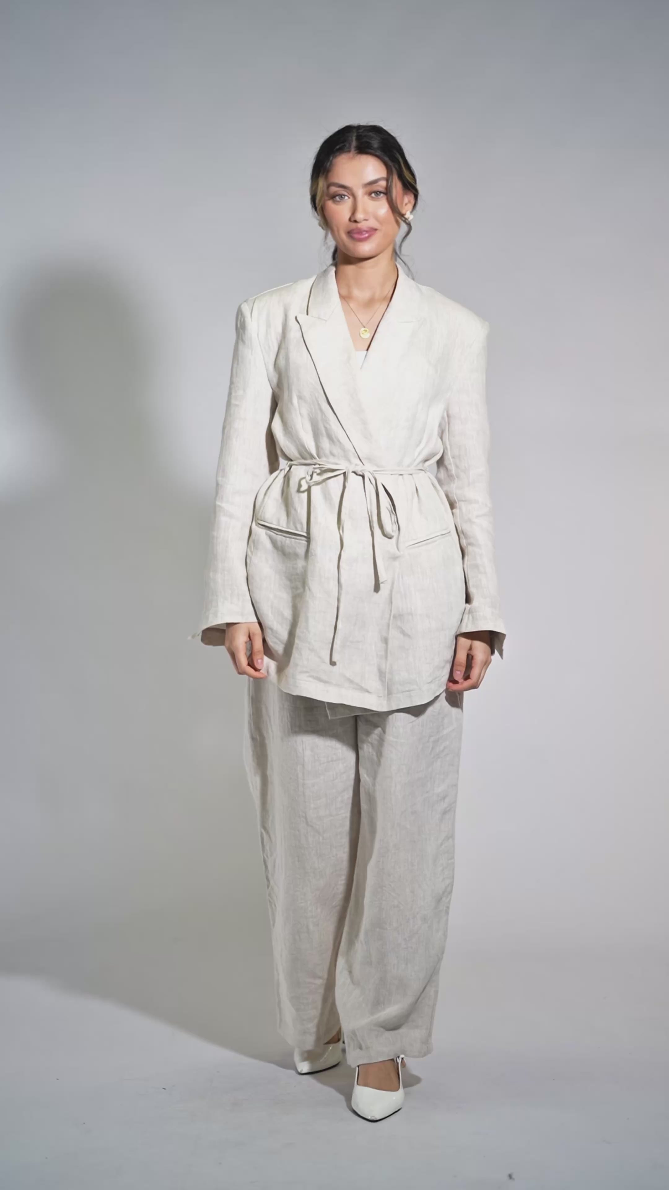 Pièce maîtresse indémodable : ce blazer oversize en lin allie une élégance décontractée à un style intemporel. Sa ceinture raffinée souligne subtilement la taille et crée une silhouette féminine – un accessoire polyvalent pour des looks d’automne stylés.