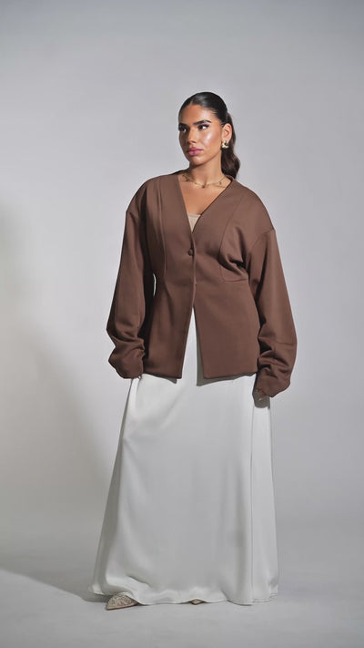Un modèle qui incarne la sobriété raffinée et l'élégance discrète de la société viennoise. Le blazer Opera présente une coupe croisée souple qui évoque la précision de la confection traditionnelle.