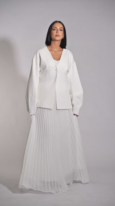 Un modèle qui incarne la sobriété raffinée et l'élégance discrète de la société viennoise. Le blazer Opera se décline dans un élégant coloris ivoire, avec une coupe souple et une double boutonnière évoquant la précision de la confection traditionnelle.