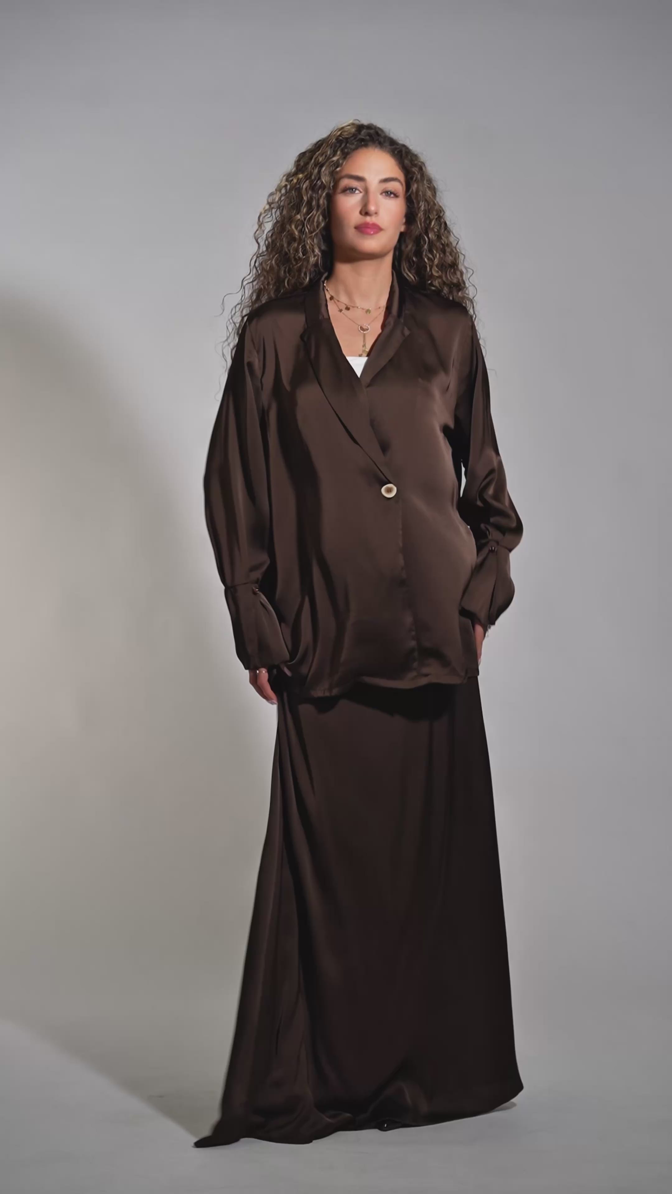 Complément idéal de la jupe en satin de soie . Découvrez notre nouveau cardigan en satin de soie , où l'élégance classique rencontre le luxe moderne. Ce chemisier raffiné est orné d'un bouton discret juste sous la poitrine. Son atout majeur ? Les délicates perles qui ornent les manches et lui confèrent une allure subtilement aristocratique.
