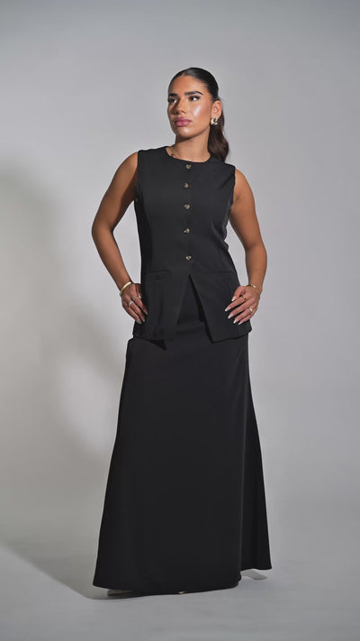 Complément idéal du gilet Old Vienna . Sa ceinture sculptante affine la taille, tandis que sa coupe ample offre une grande liberté de mouvement. Une fermeture éclair latérale discrète s'intègre parfaitement au design minimaliste et souligne l'équilibre entre fonctionnalité et esthétique.